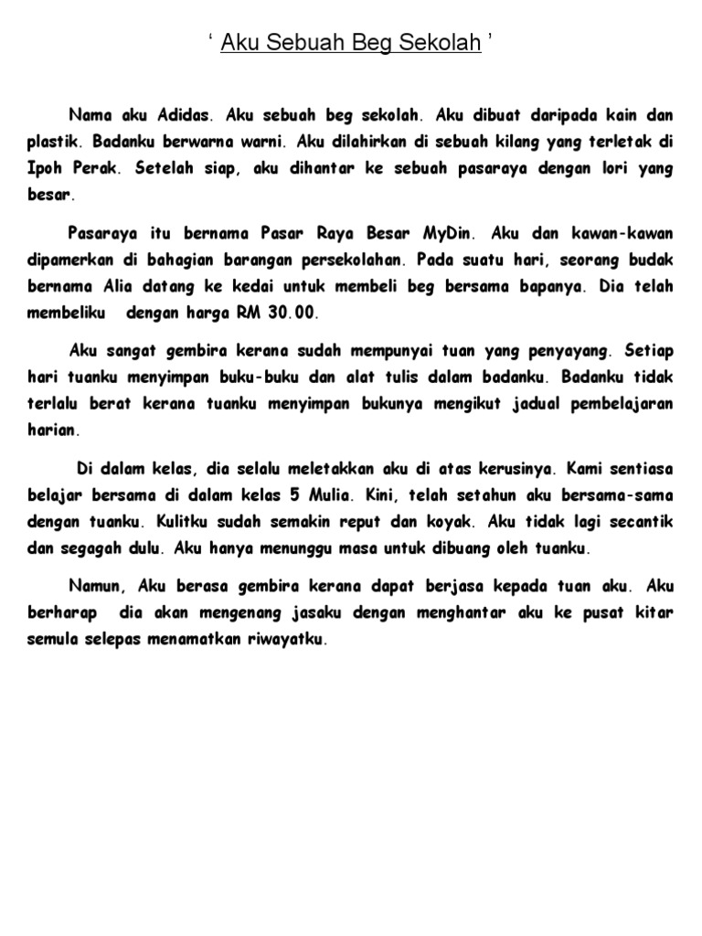 Ejercicio De Karangan Pendek Aku Sebuah Beg Sekolah